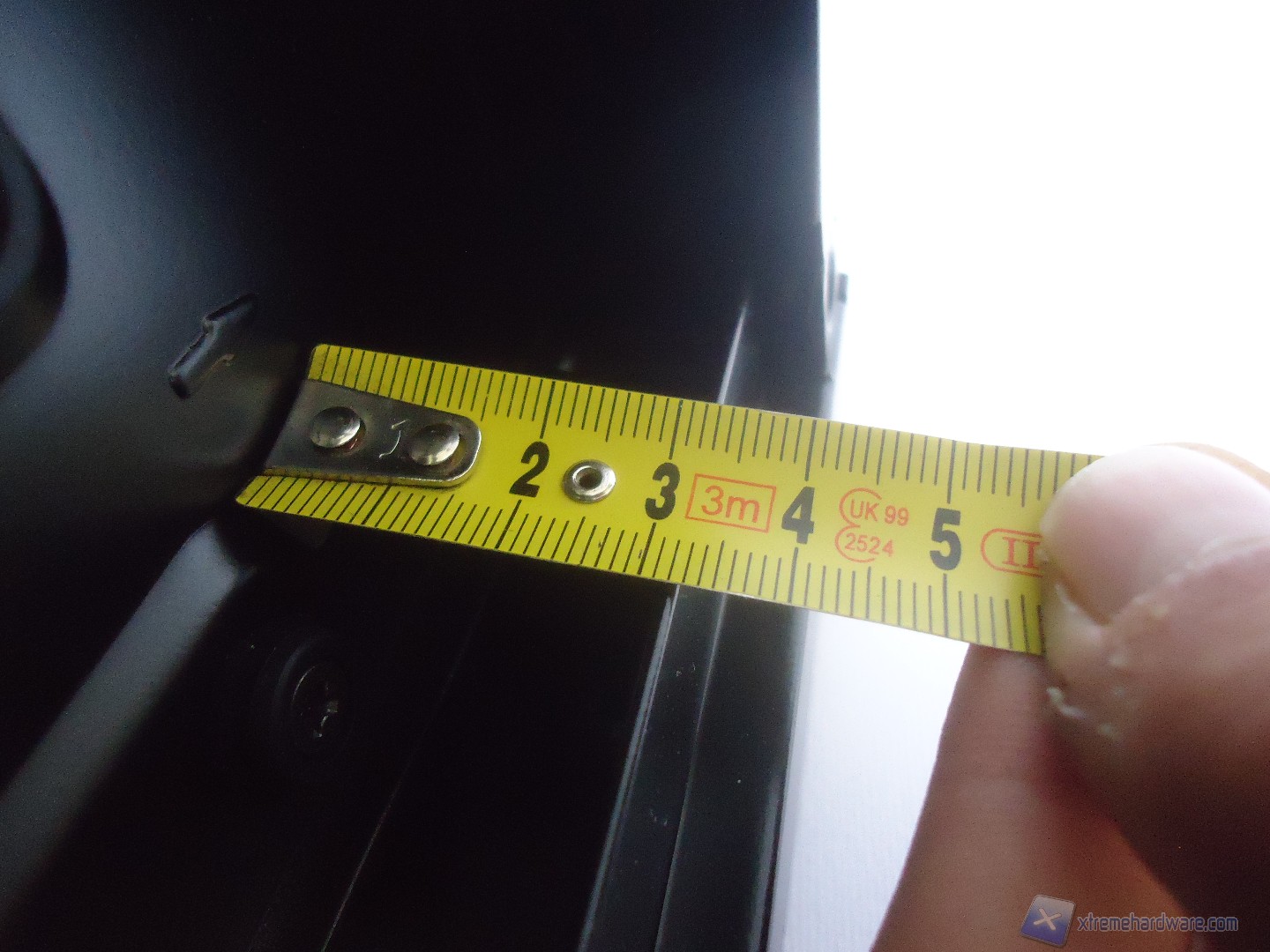 Lo spazio a disposizione per il cable management varia da 2,7cm (cosi come dichiarato dal fornitore) a circa 3,3 cm nella parte inferiore del case: un po’ più di spazio che sarà sicuramente utile.
